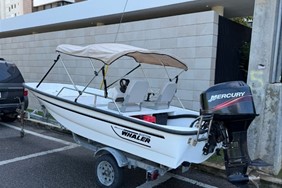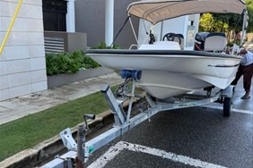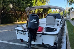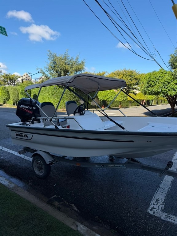 Bote boston whaler 13 pie, está como nuevo. Tiene motor mercury 50hp con encendido eléctrico, power trim y hélice de acero, escalera nueva, porta varas, tiene un tanque fijo de 12 galones, batería y sistema eléctrico nuevo. El tráiler está como nuevo. Caso 2001. Motor 2007