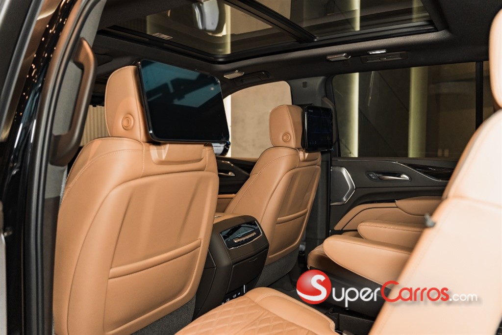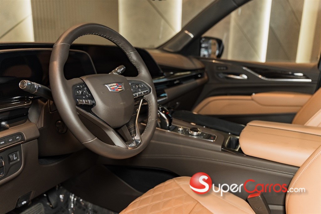 CADILLAC ESCALADE PREMIUM LUXURY LONG 2024 6.2 litros Vortec V8 VVT con capacidad Flex Fuel, 4WD (Potencia 425hp @ 5,600rpm. Torque: 460 Ib-pie @ 4,100 rpm), rines de 22* *9.0 de Aluminio con pintura Premium, sunroof Panorámico, eléctrico, deslizable con sistema de apertura rápida, 7 bolsas de aire (2 frontales y 2 laterales para conductor y pasajero, 2 de cortina para las 3 filas de asientos, y una central frontal y con sensor de activación en caso de volcadural, aire acondicionado Tres zonas, con controles automáticos de temperatura independientes para conductor, pasajero y compartimento trasero con controles independientes, Sistema de infoentretenimiento - 3.5 HMIpanorámico con pantalla de 16.9* con control rotatorio: Despliega información como navegación, música y todas las funciones del vehículo. Sistema OLED, conectividad mejorada, reconocimiento de voz y sistema de navegación premium. 2 pantallas traseras de 12.6° HD en la segunda fila de asientos, con 2 puertos HDMI y USB-C. Incluye 2 audífonos inalámbricos. Proyección de apps del teléfono en la pantalla sin necesidad de cables. Display de información del vehículo reflejado en el parabrisas de 2x4* a multicolor, reconfigurable. Sistema de sonido AKG con 18 bocinas, 2 amplificadores y bassbox. Sistema de visibilidad panorámica para prevenir accidentes.