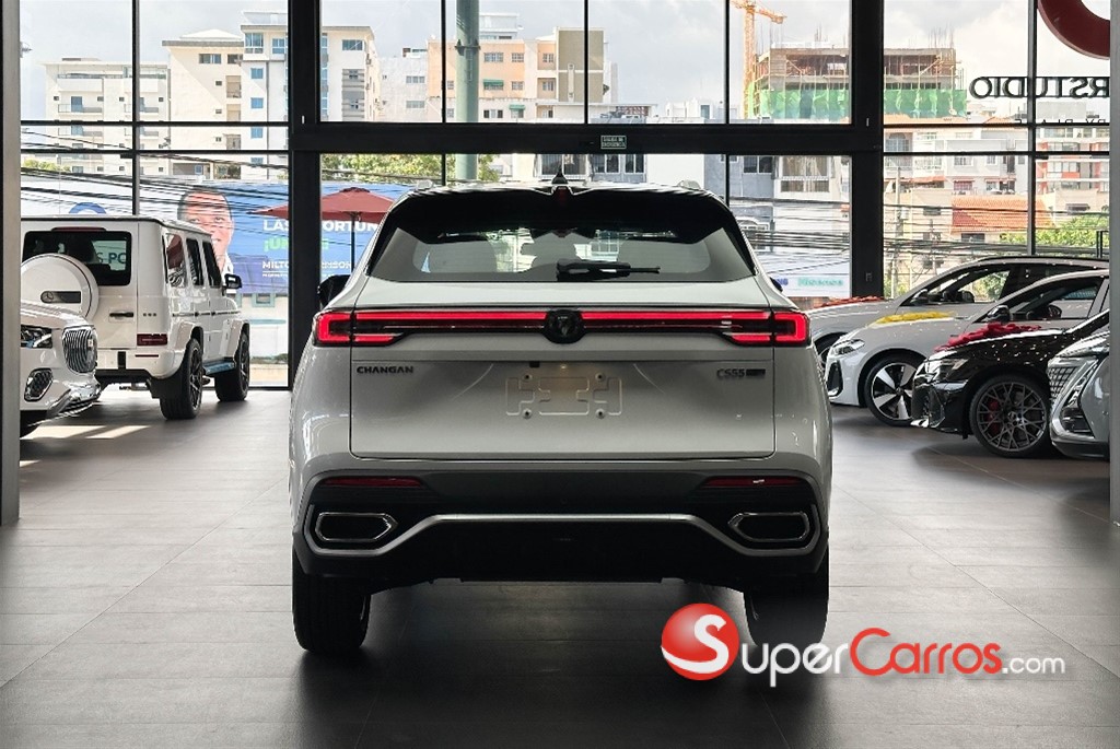 —-NUEVA—- CHANGAN CS55 PLUS TOURING 2027 Detalles: Motor y desempeño • Motor: 1.5 L Turbo Blue Whale, 4 cilindros • Cilindrada: 1,494 cc • Potencia: 185–192 hp aprox. • Torque: 300–310 Nm • Transmisión: automática DCT de 7 velocidades (doble embrague) • Tracción: delantera (FWD) • Modos de manejo: Eco / Normal / Sport Consumo y combustible • Combustible: gasolina • Consumo combinado: 6.9 L/100 km (˜14.4 km/l) • Tanque de combustible: 55 L aprox. Dimensiones y capacidad • Largo: 4,515 – 4,539 mm • Ancho: 1,865 mm • Alto: 1,680 mm • Distancia entre ejes: 2,656 mm • Peso aprox.: 1,445 kg • Capacidad: 5 pasajeros Suspensión y ruedas • Suspensión delantera: McPherson • Suspensión trasera: Multilink • Frenos: discos en las cuatro ruedas • Rines: 19 Equipamiento tecnológico (Touring / alta gama) • Pantalla multimedia 12.3 • Panel de instrumentos digital 10 • Apple CarPlay / Android Auto • Cámara 360° • Techo panorámico • Cargador inalámbrico para smartphone • Llave inteligente y arranque por botón Seguridad • Hasta 6 airbags • Control de estabilidad (ESP) • Control de tracción • Asistente de mantenimiento de carril • Control crucero adaptativo (ACC) • Sensores y cámara de estacionamiento Visita ya nuestro #ShowRoom y obtén una prueba de manejo en esta o cualquier unidad de tu preferencia! INFORMACIÓN, COTIZACIÓNES & ASISTENCIA: WhatsApp: (829) 619- 8171 (809) 774- 3611 (809) 884-8931 (829) 816-2507 (809) 913-8876 (809) 683-3917 — F i j o - C e n t r a l -Recibimos tu vehículo usado al mejor precio del mercado -Entrega y servicio a domicilio en cualquier parte del país -Laminado 3M gratis -Mejor servicio Post-Venta del país