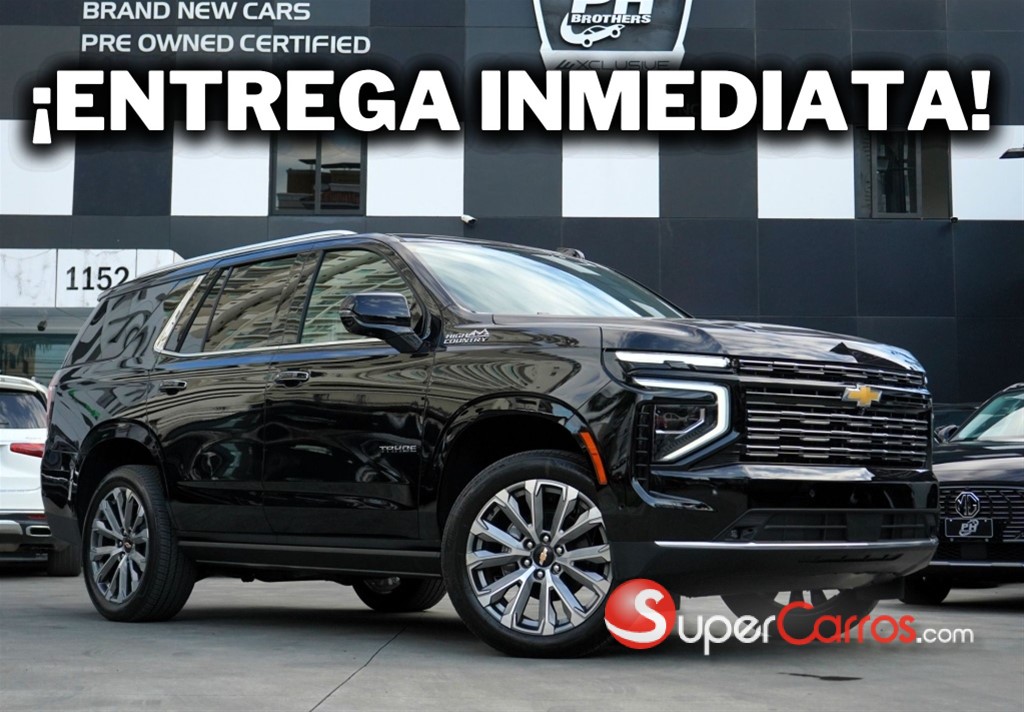 We speak English 6.2L Ecotec V8. Incluye sistema de administración dinámica de combustible (DFM) Eje trasero con radio de 3.23 Sistema Stop/Start: sistema que detiene el motor en alto total al presionar el pedal de freno. El motor entra en funcionamiento al dejar de presionar el pedal de freno. Incluye botón para desactivar Tracción 4x4 (AWD y 4WD con selector) Caja de transferencia 4x4: interruptor electrónico de cambio de tracción en tablero de instrumentos (2 velocidades) Suspensión Magnetic Ride Control™ (Control Magnético de Manejo). Potencia: 425 hp @ 5,600 rpm Torque: 460 lb-pie @ 4,100 rpm Transmisión automática de 10 velocidades Suspensión de manejo premium con amortiguadores de gas de alta presión Frenos delanteros y traseros de disco con sistema ABS en las 4 ruedas Seguridad y Tecnología 7 bolsas de aire (2 frontales y 2 laterales para conductor y pasajero, 2 de cortina para las 3 filas de asientos y una central frontal con sensor de activación en caso de volcadura) Punto ciego con asistente de mantenimiento de carril con extensión a trailer Indicador de presión de llantas, incluye alerta de falta de aire Sensor automático de ocupación del copiloto, determina si se habilita o deshabilita el funcionamiento de la bolsa de aire Cámara de visión 360º, basada en un sistema de 4 cámaras para ofrecer una visibilidad panorámica en alta definición Limpiador de cámara trasera Cinturón de seguridad con alerta de asientos traseros (2da y 3ra fila) Alarma contra robo acústica, con inmovilizador electrónico y alarma de pánico en la llave Asistente de mantenimiento de carril, detección de líneas de carril con indicador en clúster y asistencia en dirección Estacionado semiautomático delantero, trasero y lateral delantero (dirección, frenado y cambio de marchas semiautomáticos) Sensor de detección de peatones y ciclistas, alerta lateral al abrir la puerta por cercanía de ciclistas, peatones o vehículos. Indicador trasero de detección de peatones **Asistente de frenado en reversa y a todas las velocidades Asistente de tráfico cruzado, alerta de tráfico en intersección Freno de tráfico cruzado trasero Alerta de colisión frontal, con icono que cambia de color según la proximidad del vehículo de adelante Guía de remolque, cámara de visión trasera HD Garantía de 3 años o 100,000 KM