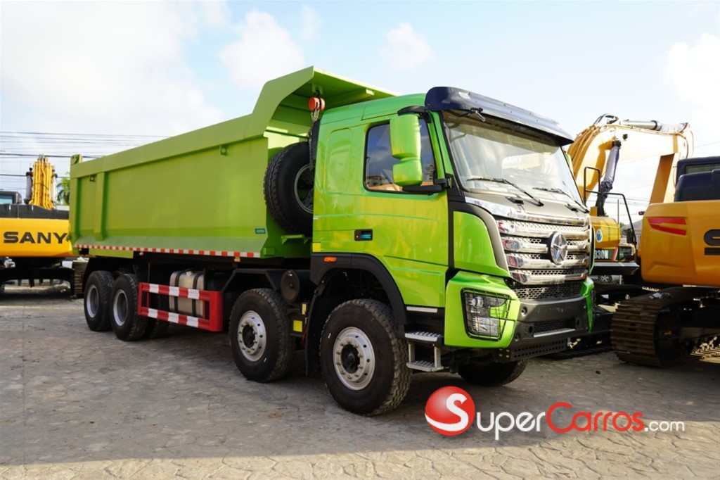 MOTOR: Weichai WP12.420E32 – Euro II – Turbo diésel Intercooler 11,596 cc 6 Cilindros 420 HP /1300-1400 Rpm 309 Kw/420 ps 2,200 R/min TRANSMISION: Fast 12JSDX220T-B+QH70 / C/Toma de fuerza Mecánica 12 velocidades + 2 Reversa / Tracción trasera 8x4 Sistema de dirección: Hidráulica asistida SUSPENSIONES: 8/10+8; Eje delantero: Eje 2*9.5T, con frenos de tambor Ejes traseros támdem: 2 ejes de acero fundido de 16T, reducción principal y de cubo relación de velocidad principal i = 5.92; Viga rígida: 300×80×(8+8)+8 FRENOS Y NEUMATICOS: Freno de tambor de aire comprimido y energía del resorte de freno de respiración Combustible Diesel, con capacidad del tanque 400 L / 106 Gls. Sistema eléctrico 24V, Capacidad nominal 165Ah. Neumáticos: 13R22.5 ó 315/80R22.5, 18PR, 12+1pcs, neumático radial + Repuesta y Herramientas. EQUIPAMIENTOS: Aire acondicionado de fábrica, semi automático. Ajuste del volante en 4 direcciones Cristales eléctricos con seguros electrónicos Asientos en tela Radio AM/FM - MP3 con Bluetooth para iPhone y Android Tapasol Chofer y acompañante Retrovisores manuales Cinturones de seguridad Muelles reforzados Medidor de combustible, Tacómetro, Velocímetro, medidor combustible, ETC Combinación de panel de instrumentos totalmente digital Listera con Cama garantía de 24 meses o 200,000 kms. (Lo que suceda primero).