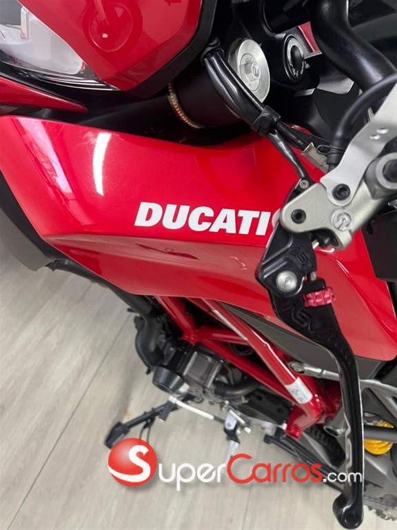 Especificaciones principales (Hypermotard 950 2019) Motor: Testastretta 11° L-Twin (bicilíndrico en L) Cilindrada: 937 cc Potencia: 114 hp @ 9,000 rpm Torque: 96 Nm @ 7,250 rpm Transmisión: 6 velocidades Refrigeración: Líquida Peso en seco: aprox. 176 kg Electrónica: Ducati Traction Control (DTC) ABS Bosch con función en curva Modos de conducción (Sport, Touring, Urban) Pantalla TFT ?? Características destacadas Estilo supermotard agresivo Chasis tubular rojo característico Ducati Suspensiones totalmente ajustables Excelente para ciudad y manejo deportivo Sonido deportivo típico Ducati ?? Detalle importante La etiqueta confirma: Engine displacement: 937 cc Cumple normas EPA 2019 Fabricada en Bologna, Italia