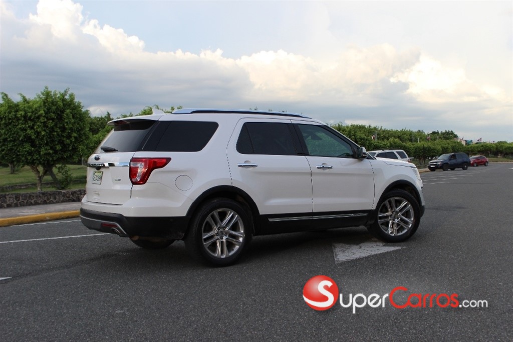 Características Generales Marca:Ford explorer Modelo:Limited edition Motor:3.5 V6 Transmisión: automática Color:blanco perla 3 líneas de asiento en color crema Combustible:Gasolina Tracción: 2WD Año:2017 versión americana. Accesorios .Bolsas de aires frontales y laterales. .sensores de parqueo. .Baul eléctrico. .Guia hidráulico. .Retrovisores eléctricos. .Aros de magnesio. .Aire acondicionado digital. .Sistema de navegación. .Vidrios eléctricos.