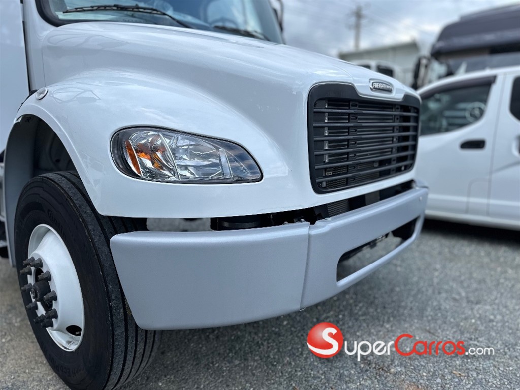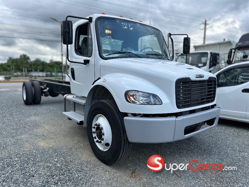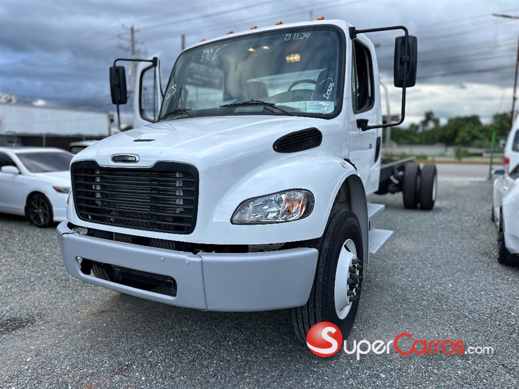 CAMIÓN CHASIS FREIGHTLINER M2 106 4X2 26 PIES CHASIS ÚTIL ? ?? INFORMACIÓN GENERAL * Año Modelo: 2025 * Tipo: Camión rígido * Uso: Carga general * Cabina: Cabina S * Entrega: Inmediata ? ?? MOTOR Y DESEMPEÑO * Motor: MBE900 – 6.4L * Potencia: 230 HP @ 2,300 RPM * Torque: 660 lb-ft @ 1,200 RPM * Normativa: EPA 98 / EURO III * Freno de motor: Incluido * Sistema eléctrico: 12 voltios * Baterías: 3 baterías ? ?? TRANSMISIÓN * Caja: Eaton Fuller FSO-6406A * Tipo: Manual * Velocidades: 6 marchas * Embrague: Cerámico amortiguado ? ??? EJES Y SUSPENSIÓN * Eje delantero: 14,700 lb * Eje trasero: 23,000 lb * Relación trasera: 4.89 Suspensión: * Delantera: 14,600 lb (hoja plana) * Trasera: Multi-leaf 23,000 lb con resorte auxiliar ? ?? RUEDAS Y NEUMÁTICOS * Aros: 22.5 x 8.25 * Llantas delanteras: Conti EcoPlus HS3 * Llantas traseras: Conti EcoPlus HS3 * Repuesto: Incluido ? ?? CHASIS Y DIMENSIONES * Chasis: Alta resistencia (120 KSI) * Distancia entre ejes: 256” * Volado trasero: 125” * Tipo: Remachado HUCK-SPIN ? ?? SISTEMA DE FRENOS * Sistema neumático de doble circuito * Frenos delanteros: Meritor 15.5 x Q Plus * Frenos traseros: Meritor 16.5” x 7” ? ? COMBUSTIBLE * Capacidad: 80 galones * Tanques: Aluminio rectangulares ? ?? CABINA Y CONFORT Exterior: * Faros halógenos dobles * Espejos tipo Best * Vidrios entintados * Bocinas de aire Interior: * Aire acondicionado * Calefacción * Asiento de conductor tipo butaca * Panel con indicadores completos * Volante de 18” * Cinturón de seguridad de 3 puntos ? ?? GARANTÍA 2 años o 200,000 km (lo que ocurra primero) ? ?? PRECIO ESPECIAL US$115,000 ? Precio incluye todos los impuestos pagos en República Dominicana
