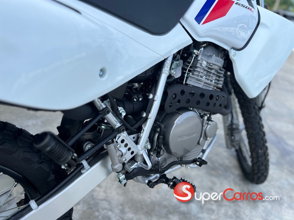 *La Honda XR650L 2024 0KM* es una moto de doble propósito con un motor monocilíndrico de 644 cc refrigerado por aire y con cárter seco. Sus especificaciones principales incluyen una transmisión de cinco velocidades, suspensión delantera Showa de 43 mm ajustable por aire, suspensión trasera Pro-Link Showa con ajuste de precarga y amortiguación, y frenos de disco. *PRECIO: 17,700 US*