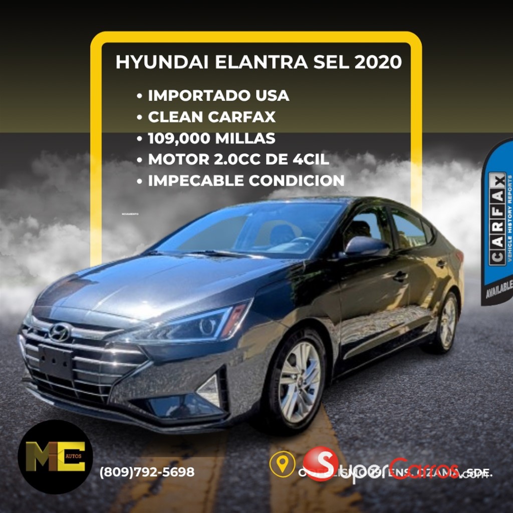 Hyundai Elantra SEL 2020 Acabado de llegar de USA ???? Clean Carfax Impecable condición – Interior de lujo Motor 2.0L 4cil con modo ECO Transmisión automática Interior en tela como nuevo Guía y radio multifunciones Retrovisores, ventanas, baúl y seguros eléctricos Seguridad total: 7 bolsas de aire + sensores de proximidad Ven y pruébalo… ¡sé tú el afortunado en llevártelo! Tenemos todas las opciones de financiamiento. Garantia 100% por el dealer. Vendido con matricula, marbete y placa incluidos
