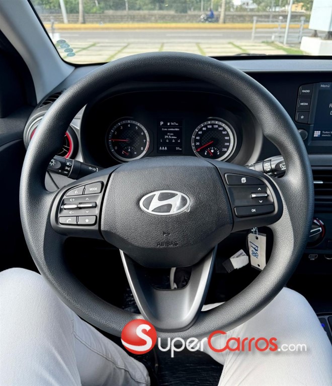 Contacto: Abraham Ricardo Cel / Whatsapp: 809.480.6078 Tel: 809.896.1555 Ext. 2103 Email: [email protected] GARANTIA DE 5 AÑOS Y/O 100,000 KMS (LO QUE OCURRA PRIMERO). Recibimos tu vehículo usado!! Hyundai Grand i10 2026 Características del modelo Motorización Motor1.200cc. Kappa MPi a Gasolina con 83 PS 4 cilindros, Doble Árbol de Levas Transmisión Automático de 4 Velocidades Sistema de Frenos Antibloqueo (ABS) Control de Estabilidad Electrónica (ESC) Cinturones de Seguridad con Pretensores Vidrios Eléctricos Portavasos Aire Acondicionado de Fabrica Exterior e Interior Estructura Reforzada de Acero de Alta Resistencia Bolsas de Aire Frontales, Laterales y de Cortinas. Espejo de Vanidad para el Pasajero delantero Espejo de Vanidad para el Pasajero delantero Sensores Traseros para Asistencia en Parqueo Radio con Pantalla Flotante Táctil de 8 Pulgadas Bocinas Delanteras y Traseras Sistema de Control de Celulares Android Auto y Apple CarPlay Control de Audio y Comunicación desde el Guía Sistema de Conexión Bluetooth con Reconocimiento de Voz Apertura y Cierre a Distancia (Keyless Entry) Inmovilizador del Encendido de Motor Suspensión Delantera Tipo McPherson, Trasera de Eje de Torsión Camara de Reversa Equipamento Extra Aros 15" de Aleación de Magnesio Dirección Asistida Electrónicamente (MDPS) Retrovisor con Opción Día & Noche Control de Cierre Centralizado desde el Conductor Llave Tipo Folding Retrovisores Eléctricos Seguros Eléctricos Cristales Laterales Eléctricos