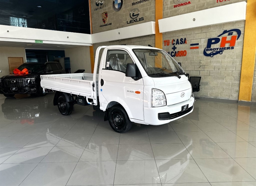 Hyundai H-100 Camion 2025 (Guía hidráulico) Motor Diesel de aspiración Natural 2,600 cc de 4 cilindros. Transmisión Mecánica de 5 Velocidades Exterior e Interior Capacidad de Carga G.V.W 2.5 Ton Cabina para 3 pasajeros. Frenos delanteros de Discos y trasero de Tambor Suspensión delantera, Clavícula doble y Muelle de barra de Torsión. Amortiguador Hidráulico de doble acción Tipo Telescopio en Eje Delantero y Trasero. Suspensión Trasera, Muelle de hojas Supuestas Semi-Elíptico. Sistema Electrónico de 12-Volt.Cinturones de Seguridad Ajustables. Cristales Manuales Retrovisores Manuales Guía hidráulico Asientos en Vinil Porta Vasos Tacómetro Porta tarjetas Aire Acondicionado de Fabrica Garantía de 5 años o 100,000 km (Lo que ocurra primero)
