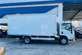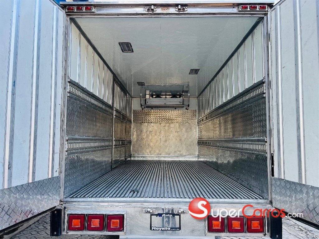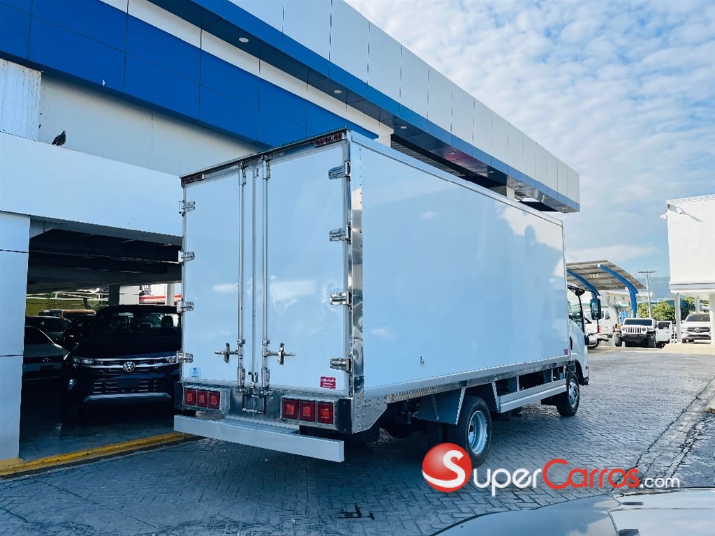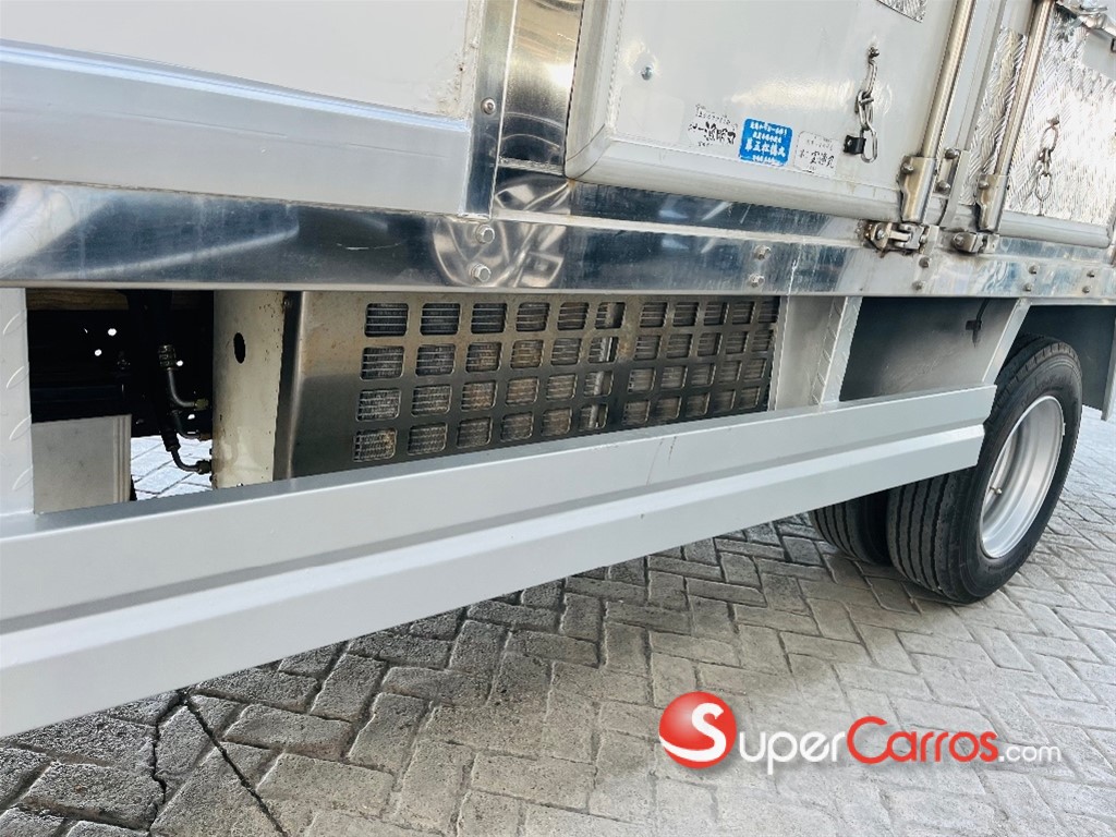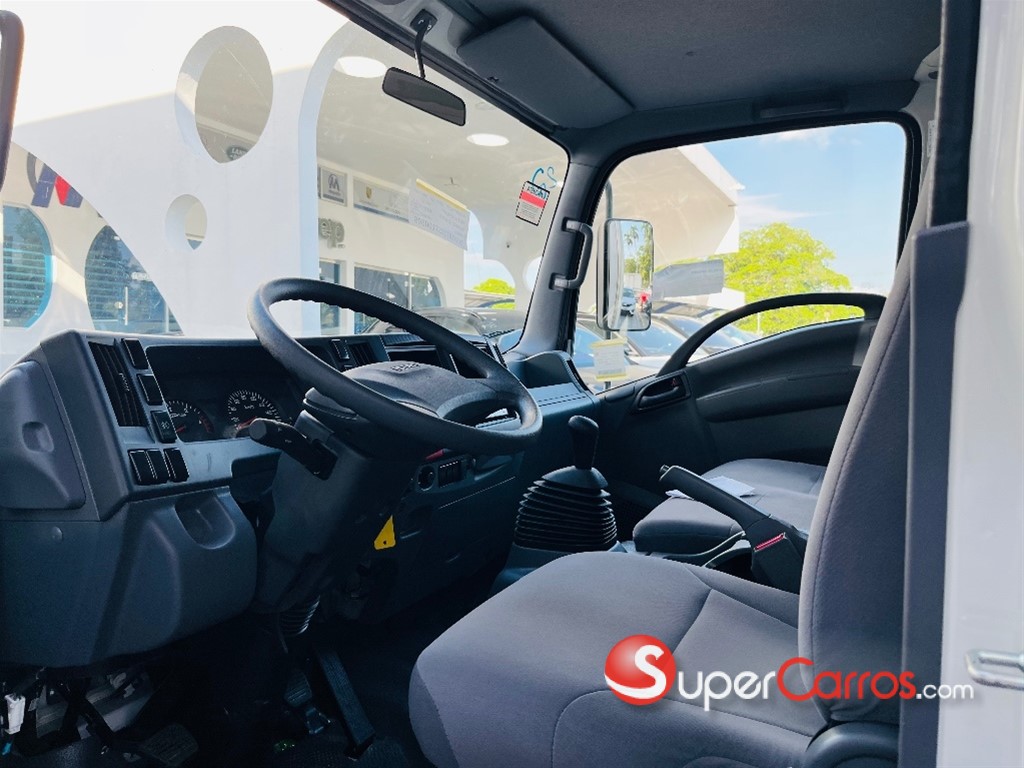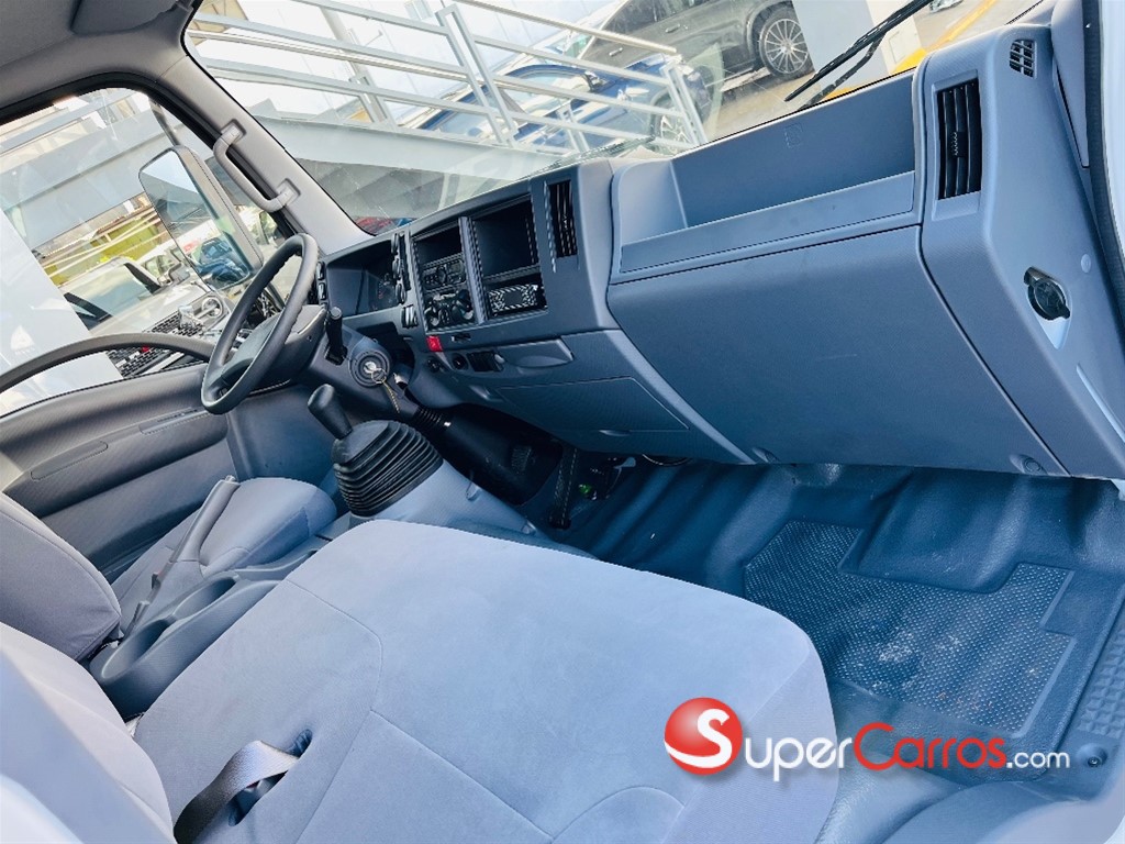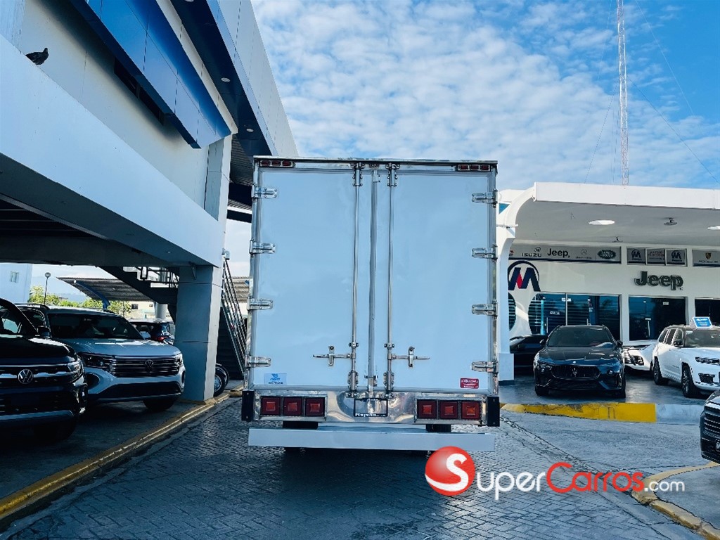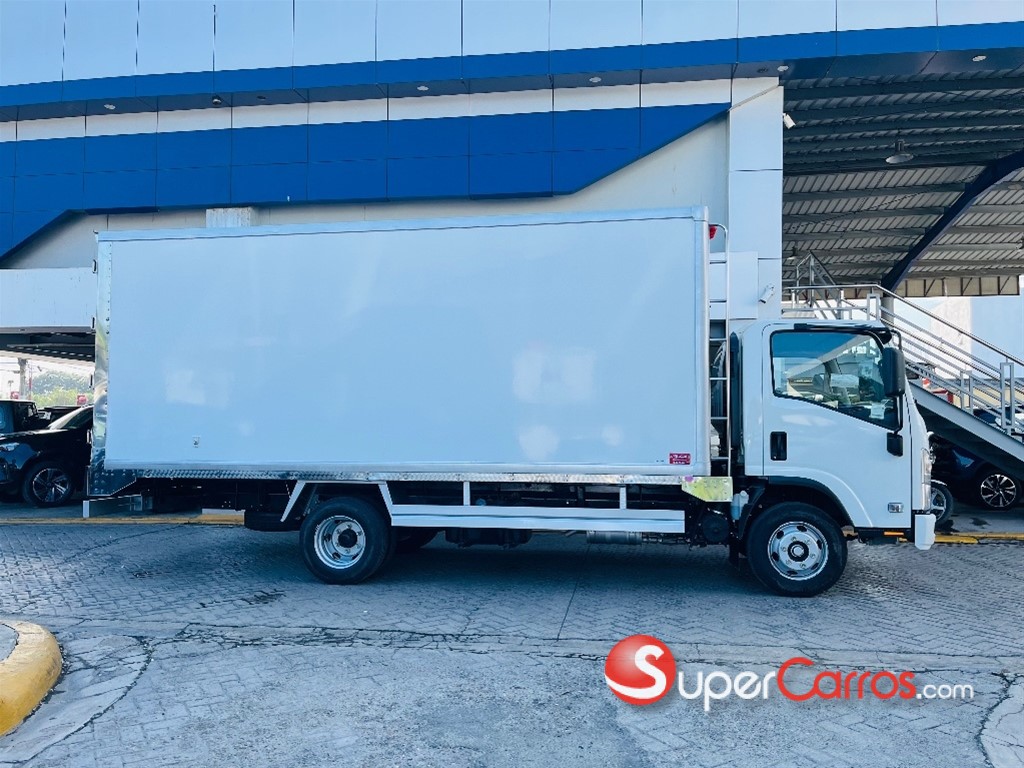 Furgón frío de 17 pies Motor y rendimiento Motor: Diésel de 4 cilindros, 4.570 cc, modelo 4HG1-TC Potencia: 121 HP a 3,200 rpm Torque: 304 Nm (31.0 Kg-m) a 1,600 rpm Combustible: Diésel Sistema de arranque: Eléctrico de 24V Transmisión y chasis Transmisión: Mecánica de 5 o 6 velocidades con retroceso Tracción: 4x2 Chasis: Largo de 16 pies (aproximadamente 4.88 metros) Suspensión: Por muelles semielípticos y amortiguadores hidráulicos Capacidad y dimensiones Capacidad de carga: Hasta 8.5 toneladas (8,500 kg) en algunos modelos Capacidad de combustible: 100 litros (26.5 galones) Características adicionales Frenos: Hidráulicos con frenos de motor (freno de escape) Aire acondicionado: Incluido Dirección: Hidráulica Luces: Halógenas Sistema de audio: Bocina de doble tono, tacómetro, radio Otras características: Alarma de reversa, guía hidráulico, limpiaparabrisas intermitentes