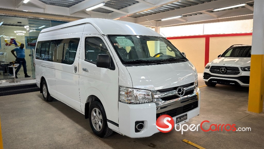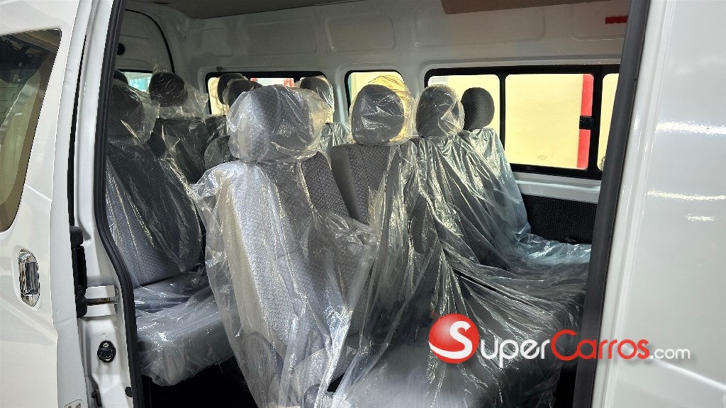 El Joylong HKL6480C es un minibús diésel con un motor de 2.5L (DK4B1) que produce hasta 134 HP, tracción 2WD y capacidad para 15 a 17 pasajeros, dependiendo de la configuración. Sus características principales incluyen un sistema de inyección Common Rail Bosch, frenos ABS+EBD, y un tanque de combustible de 70L. Las especificaciones varían según el año y la versión, por ejemplo, el modelo 2024 tiene 17 asientos, mientras que otras versiones más nuevas podrían tener diferentes configuraciones de asientos y cajas de cambio de 6 velocidades. Especificaciones técnicas Motor: Diésel de 2.5L DK4B1 con tecnología japonesa. Potencia: 134 HP @ 3800 RPM. Torque: 300 Nm @ 2600 RPM. Sistema de combustible: Inyección Bosch y Common Rail. Capacidad del tanque: 70 litros. Transmisión: Manual, de 5 o 6 velocidades + reversa según el modelo. Frenos: Delanteros de disco y traseros de tambor, con sistema ABS + EBD. Neumáticos: 195R15C. Dimensiones Largo total: 5,380 mm. Ancho total: 1,880 mm. Altura total: 2,285 mm. Distancia entre ejes: 3,110 mm. Capacidad Asientos: 15 a 17 pasajeros, según la configuración. Características y equipamiento (varían según la versión) Aire acondicionado integral (delantero y trasero). Radio multimedia con pantalla. Cámara de retroceso y sensores de estacionamiento. Bolsas de aire para piloto y copiloto. Aros de aleación.