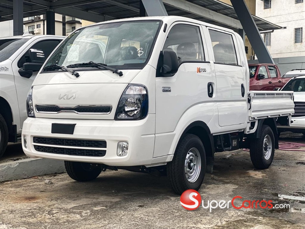 Kia k-2700 doble cabina 4wd motor 2700cc diesel, 83 hp, interior en tela, guía hidráulico, transmisión mecánica de 5velocidades, frenos de discos delanteros, reloj digital, apoya cabezas delanteros, cinturones de seguridad autotensables, barras laterales de seguridad en las puertas, capacidad de carga 1.5 toneladas, neumáticos 195R14-6PR