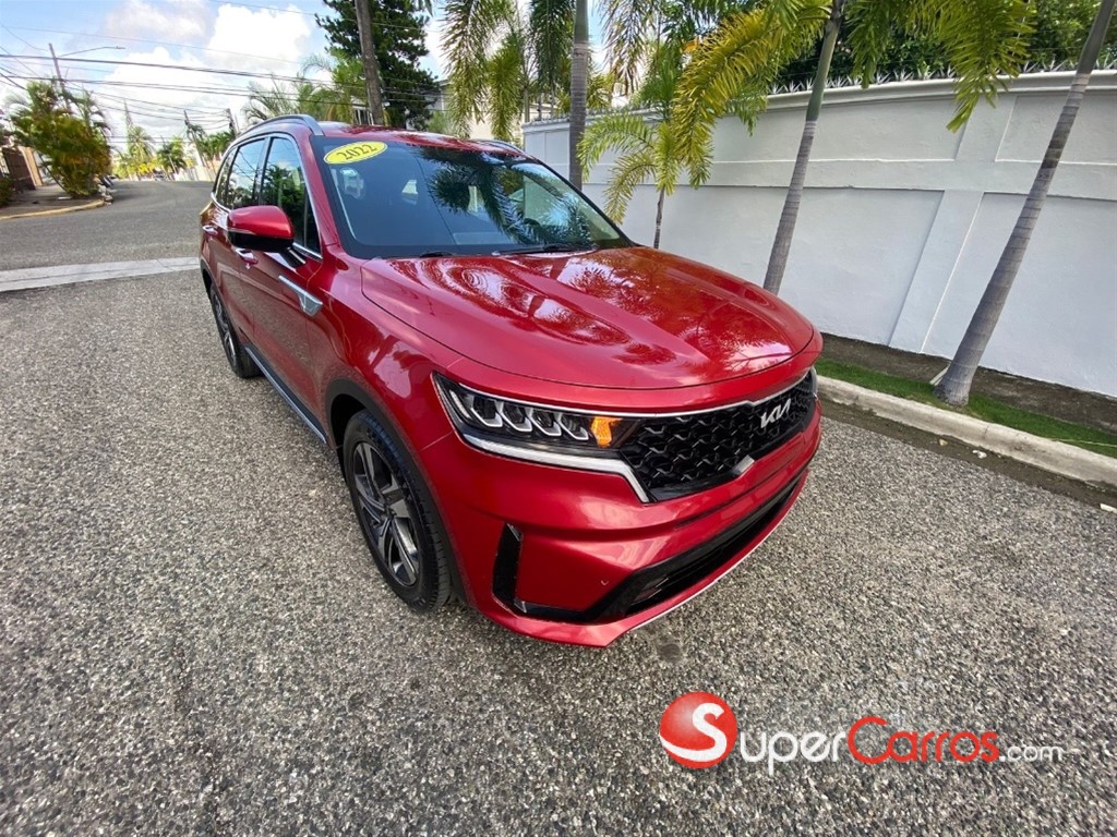 Kia Sorento LX 2022 Roja 4 cilindros 2.4 Asientos en pana Doble aire acondicionado Tres Filas de asientos Cámara de Reversa Llave push botón Aros de magnesio Cámara delantera Censores delanteros y traseros 6 bolsas de aire US$30,500