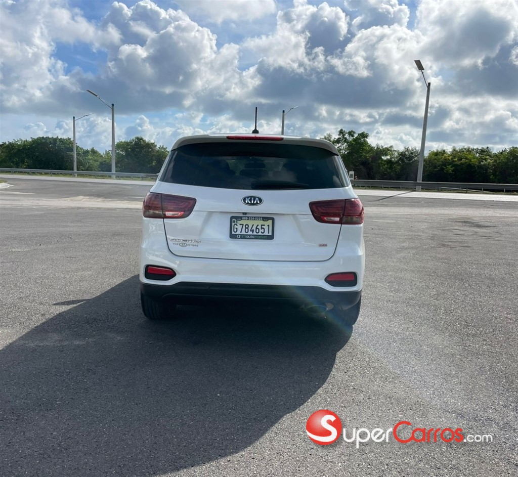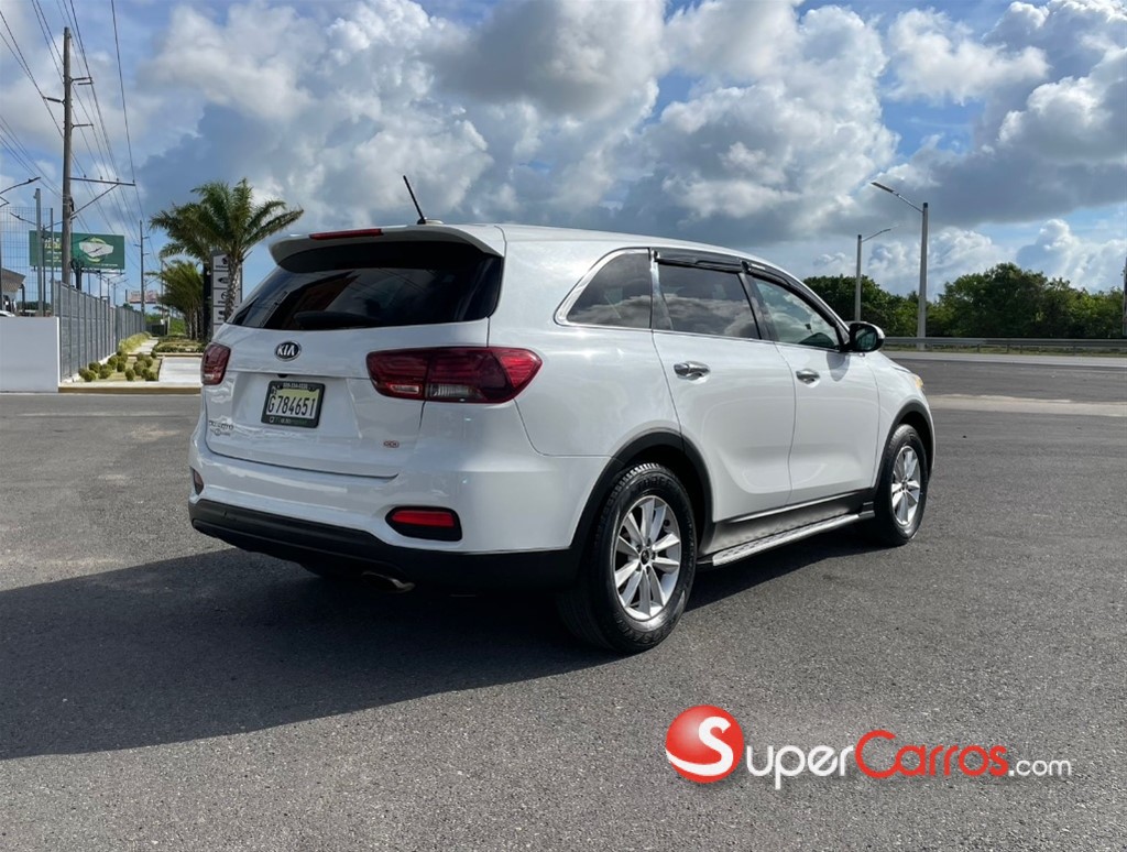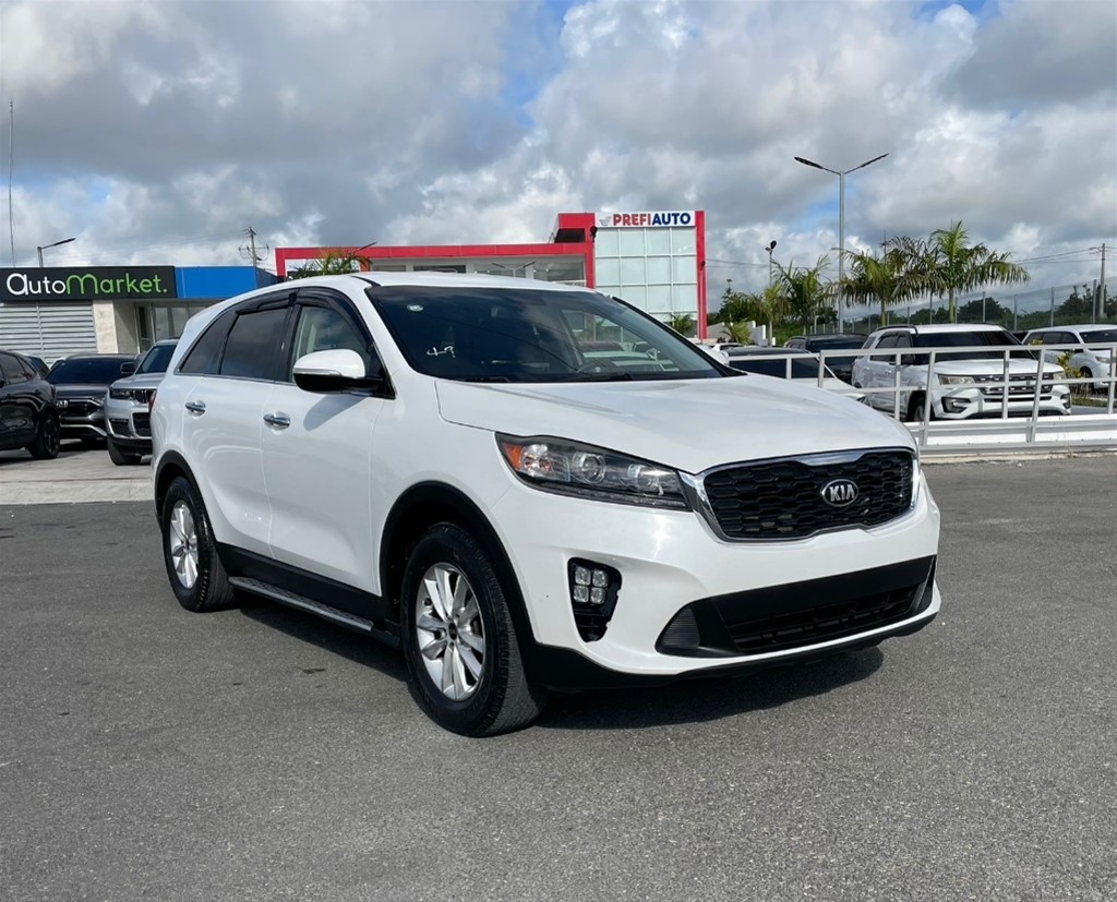 Kia Sorento 2019 LX SUV familiar de 3 filas (7 pasajeros), equipada con motor 2.4L de 4 cilindros (185 HP), transmisión automática y excelente comodidad para viajes. Espaciosa, económica y confiable, ideal para uso diario o familiar.