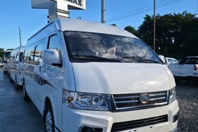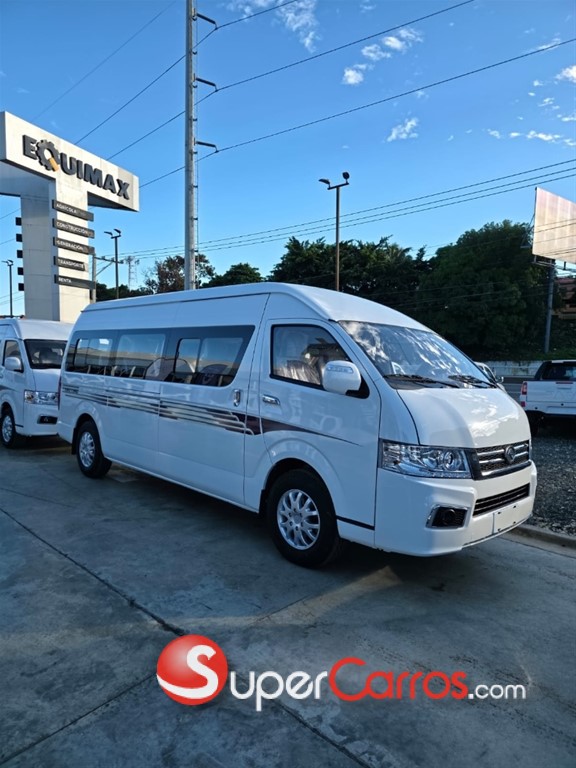Dimensiones: Largo 5998mm x ancho 1885mm x alto 2285mm Distancia entre ejes 3720mm Motorización Motor Diésel, 4 cilindros Potencia 145hp Torque 400Nm Emisiones euro III Transmisión automática 6 velocidades más reversa Chasis y seguridad: Suspensión de ballestas Frenos de disco delanteros y tambor trasero Sistema ABS+EBD Neumáticos 225/65R16LT Capacidad de 23 pasajeros Cinturones de seguridad en todos los asientos de 2 puntos Asiento de chofer con cinturón de seguridad de 3 puntos Espejos exteriores eléctricos Asientos en tela Aire acondicionado doble zona Radio MP5+Cámara de retroceso Somos Equimax, S.A., distribuidores autorizados de la marca King Long para la República Dominica. Estamos ubicados en la Autop. Juan Pablo Duarte Km. 21, Pedro Brand 10320 Tel.: (809) 561-2222 Nuestro horario laboral es de lunes a viernes de 8:00am – 6:00pm y los sábados de 8:00pm – 12:00pm ¡Agenda tu cita con nosotros y solicita tu prueba de manejo! Contamos con facilidades de financiamiento con 30% de inicial y hasta 12 meses sin intereses.