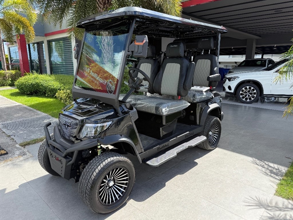 100% electrico Bateria 150 ah litio Dos motores 4x4 5 años garantia en bateria y 3 años carroceria Cinturones de seguridad Sistema de audio con carplay Frenos de disco Luces ambientales