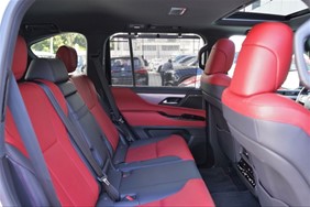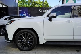 Motor 3.5 litros 6-cil en.V 24 valvulas Doble Turbocompresor gasoline (V35A-FTS) Cilindrada 3,445 CC Potencia Maxima 305 kW (409 HP) / 5,200 RPM Torque Maximo 650 Nm / 2,000 - 3,600 RPM Velocidad Maxima 210 km/h Aceleración (0-100 km/h) 7 seg Columna de dirección con regulacion telescopica e inclinacion en forma electrica. Función de salida y retorno automática Interruptores de control del volante Transmisión automática multimodo Selector del modo de manejo Freno de estacionamiento eléctrico (EPB) Memoria de posición del asiento del conductor; 3-Memorias Sistema Smart Entry & Start Botón de inicio con autenticación de huellas dactilares Selector multiterreno/Monitor multiterreno Monitor de vista panorámica Monitor de asistencia de estacionamiento Sensor de asistencia de estacionamiento Lexus Puerta trasera eléctrica automática Apple CarPlay y Android Auto Pantalla doble: EMV de 12,3 pulgadas y pantallas táctiles EMV de 7 pulgadas Sistema de sonido premium Lexus LX; Radio AM/FM, reproductor de DVD en el tablero,10 altavoces, compatible con reproducción de MP3 y WMA (Windows Media Audio),DSP (procesador de señal digital), ASL (nivelador de sonido automático) Sistema de sonido envolvente Mark Levinson Reference; Radio AM/FM, reproductor de DVD en el tablero, 25 bocinas, compatible con MP3 y WMA Play, DSP, ASL, Clari-Fi, PurePlay, QLS (Quantum Logic Surround) Lexus Safety System + (PCS, DRCC, LTA, RSA, AHB) Luz alta adaptativa (AHB) Sistema de monitor de punto ciego y monitor de punto ciego en reposo Freno de apoyo de estacionamiento (PKSB) Sistema de control de tracción (TRC) Control de estabilidad del vehículo (VSC) Sistema de asistencia de frenado ABS multiterreno con distribución electrónica de frenado (EBD) Control de asistencia en descenso Crawl Control Control de asistencia de arranque en pendiente Faros delanteros LED con proyector de 3 haces Lámparas de giro LED