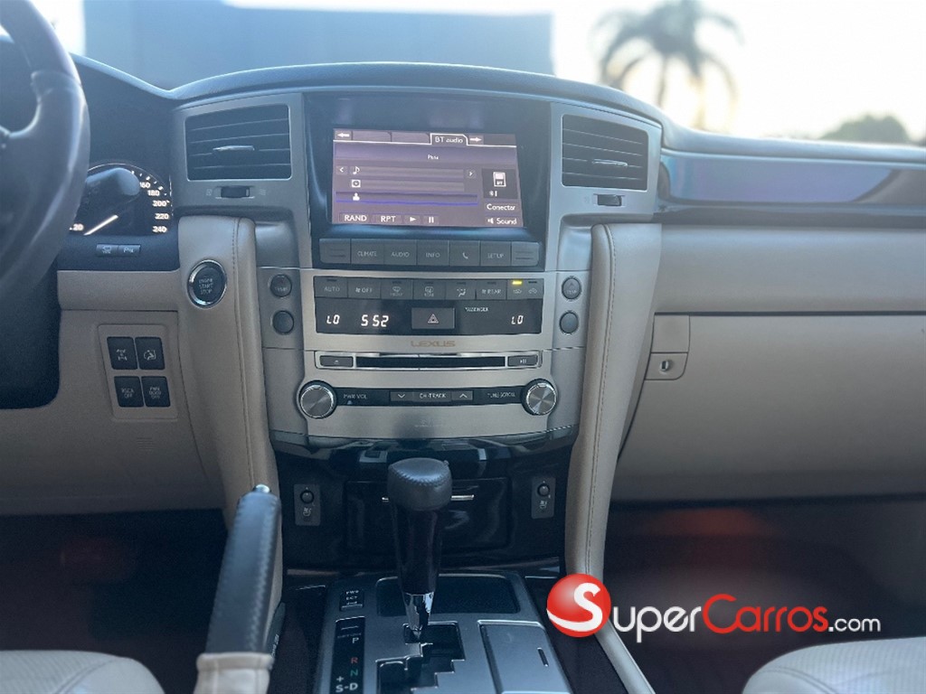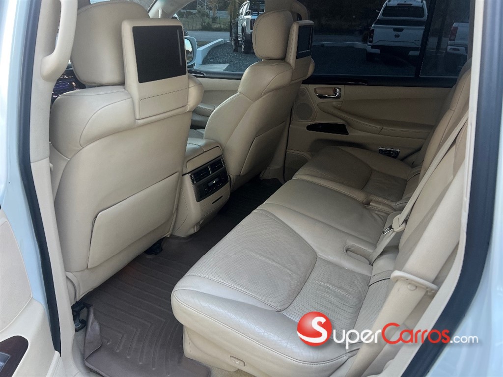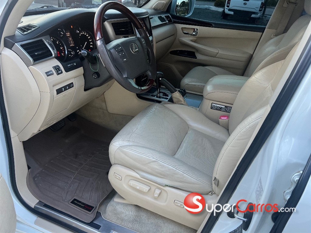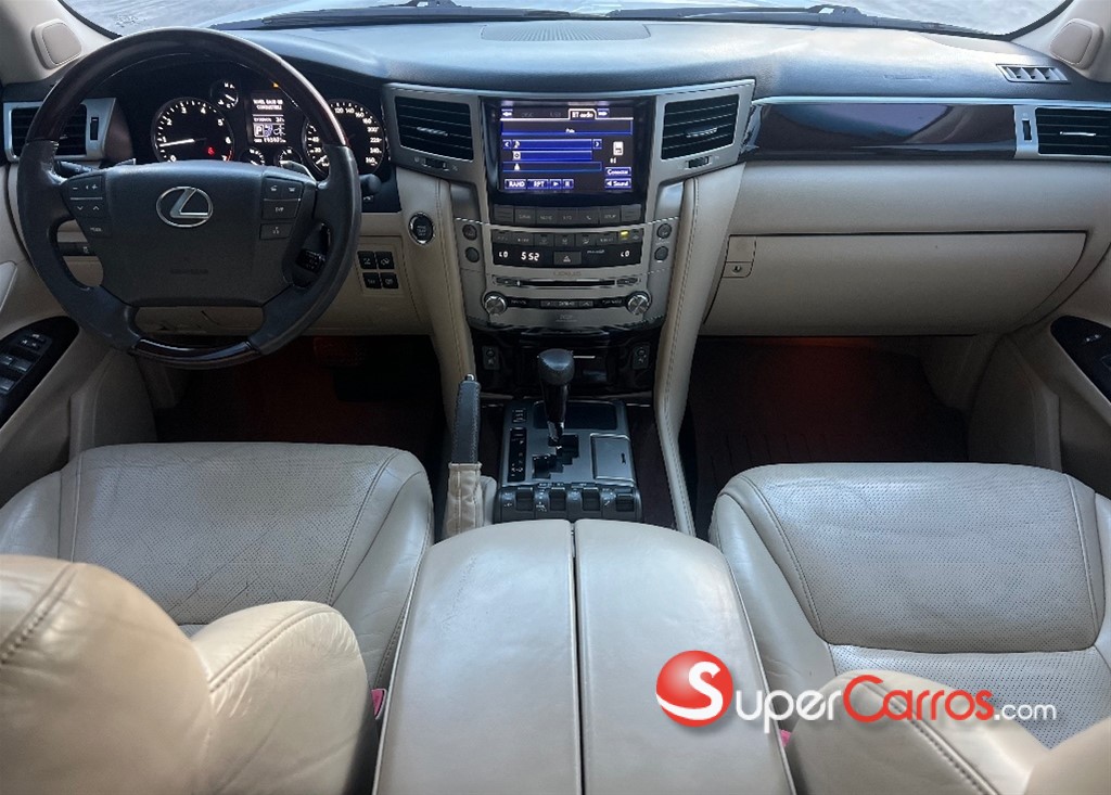 *Lexus LX 570 2013* está equipado con un motor V8 de 5.7L que produce 383 HP y 403 lb-pie de torque, acoplado a una transmisión automática de 6 velocidades y tracción en las cuatro ruedas. Cuenta con una capacidad de remolque de 3500 kg y una economía de combustible de aproximadamente 12 mpg en ciudad y 17 mpg en carretera (aproximadamente 14 mpg combinados). Ofrece un interior con capacidad para hasta 8 pasajeros, asientos de cuero, control de clima de 4 zonas y un sistema de infoentretenimiento.