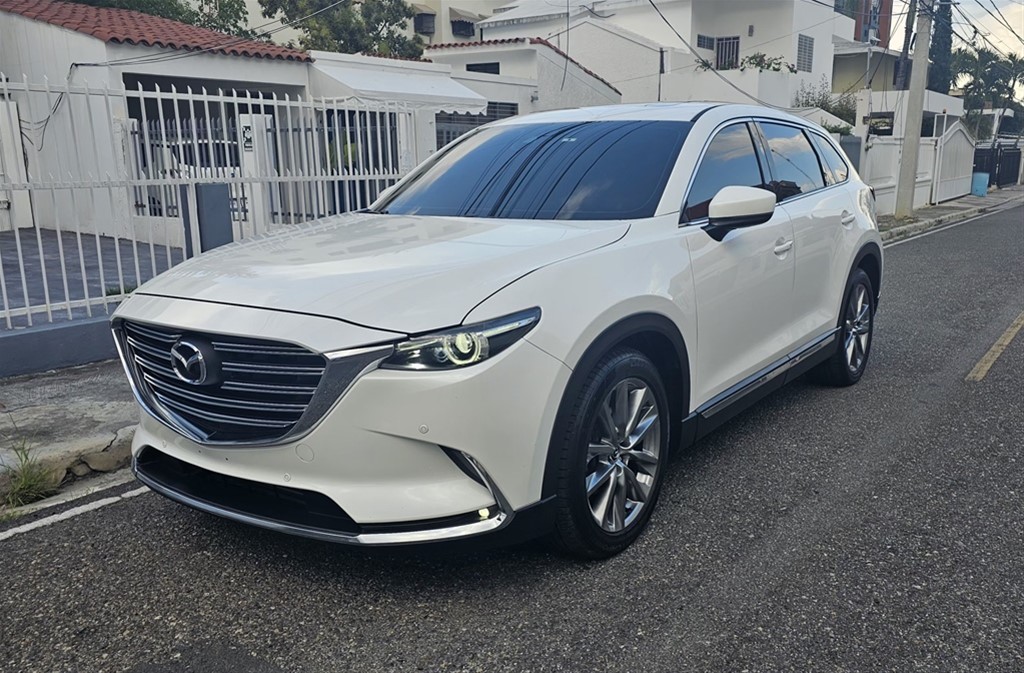 La Mazda CX-9 2018 es un SUV de tres filas y siete pasajeros reconocido por su diseño elegante y manejo ágil. Equipa un motor 2.5L turbo de 4 cilindros, asientos de cuero, pantalla táctil de 8 pulgadas y un alto nivel de seguridad (punto ciego, frenado automático). Sonido profesional Bose. Santiago De Los Caballeros.