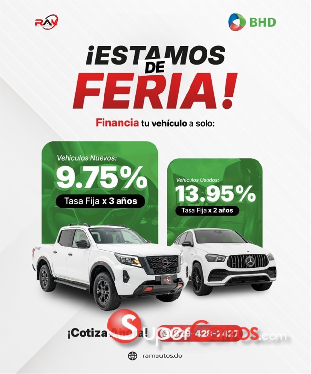 -EXPOMÓVIL BANRESERVAS La movida está en tus manos La oportunidad que estabas esperando está aquí NISSAN FRONTIER PRO-4X 2025 FUERZA DIÉSEL Y TECNOLOGÍA 4X4 DESDE DUBÁI MOTOR Y RENDIMIENTO • Motor 2.5L High Output Turbo Diésel • Potencia: 190 HP | Torque: 450 Nm • Transmisión automática • Tracción 4WD con diferencial trasero LSD • Capacidad de remolque: 3,500 kg • Rines de aleación 17" con neumáticos AT CONFORT PREMIUM • Doble cabina | 5 pasajeros • Asientos en cuero • Climatizador automático de doble zona • Pantalla táctil de 8" • Apple CarPlay y Android Auto SEGURIDAD TOTAL • Cámara 360° + Monitor de objetos • 7 airbags (frontales, laterales, cortina y rodilla) • Control de estabilidad y tracción • Hill Start Assist • Sensores de reversa -OFERTA EXPOMÓVIL - TIEMPO LIMITADO Precio: US$60,000 PRECIO DE FERIA US$56,900 Inicial: US$6,000 Hasta 90% de financiamiento Hasta 7 años para pagar Cuota Móvil disponible Comienza a pagar en Febrero 2026 Aprobación rápida Entrega inmediata INCLUYE: -Tanque lleno de gasolina -Tintado cerámica completo -6 meses de mantenimiento GRATIS -1 año de garantía extendida -Importada directamente desde Dubái -Inspección Multi-puntos -10 day moneyback -Revestimiento en cerámica -Juego de alfombra RECIBIMOS TU VEHICULO USADO Al mejor precio del mercado NO DEJES PASAR ESTA OPORTUNIDAD Esta oferta es solo por tiempo limitado LLAMA YA 809-287-8059 Asesores de ventas: 809-497-3030 809-993-9042 www.ramautos.do Tu próxima aventura comienza aquí Restricciones aplican