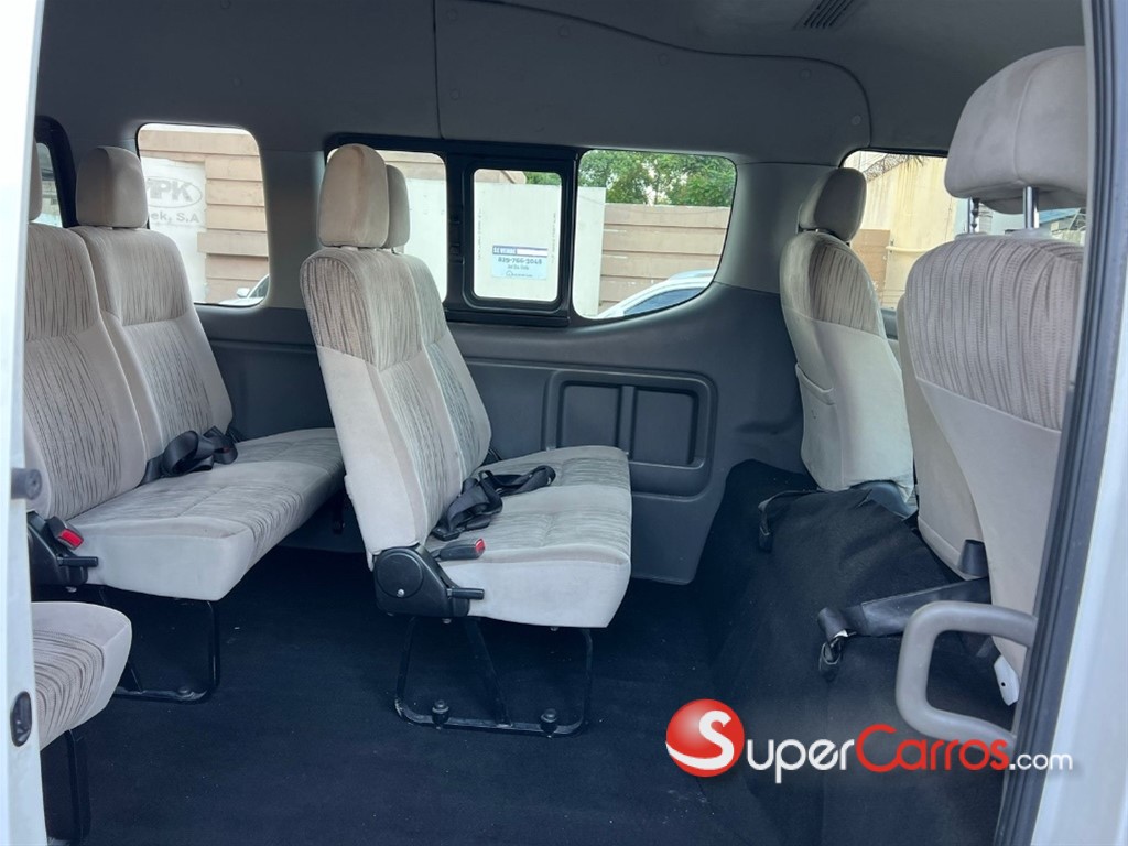 Capacidad para 15 pasajeros - Motor 4 cilindros 2.5 Turbo Diesel, Transmisión Automatica - Bolsa de aire para conductor y pasajero - 5 lineas de aire acondicionado adicional a la frontal- Gomas nuevas. ?Tintado gratis ?1 año de garantía en motor, transmisión, partes complementarias y aire acondicionado ?Recibo vehículo ?Financiamiento disponible.
