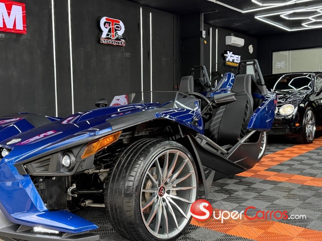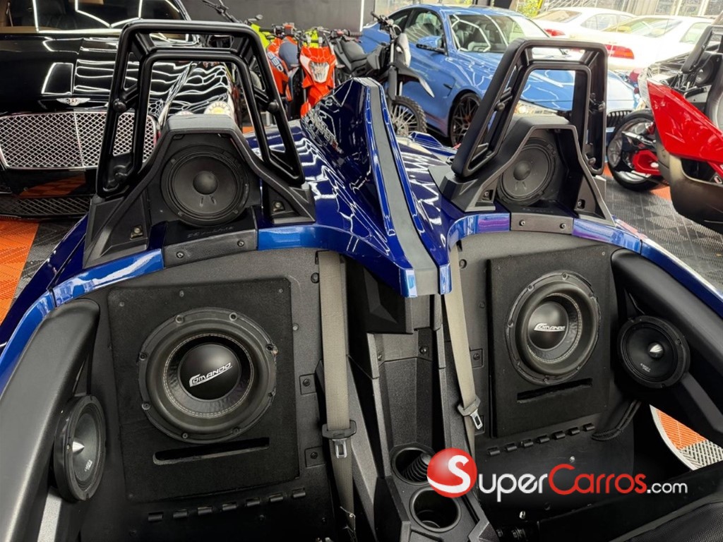 POLARIS SLINGSHOT SL - EDICIÓN ESPECIAL ¡Vive la experiencia de conducción más pura y llamativa! Se vende impecable Polaris Slingshot SL, una unidad configurada para los amantes del detalle, el buen sonido y el estilo agresivo. Este "autocycle" combina la libertad de una moto con la comodidad y estabilidad de un deportivo. DETALLES PRINCIPALES: • Modelo: Slingshot SL. • Color: Azul Eléctrico Profundo (Deep Blue) con acabados en negro mate. • Transmisión: Manual (para un control total de la potencia). • Condición: Impecable, mantenimiento al día y cuidado bajo techo en showroom. EQUIPAMIENTO DESTACADO: • Sistema de Audio Custom: Configuración masiva de sonido profesional con bocinas y subwoofers Commando, integrados estéticamente detrás de los asientos y en los laterales. ¡Calidad de audio cristalina incluso a altas velocidades! • Iluminación LED: Faros delanteros de alta intensidad y firma lumínica trasera LED completa. • Interior Premium: Asientos deportivos resistentes al clima con costuras decorativas, pantalla de infoentretenimiento central táctil y cámara de reversa. • Ruedas de Lujo: Aros de aleación de gran diámetro con diseño multirradio en acabado plata satinada, calzados con gomas de perfil bajo en excelente estado. • Personalización: Volante deportivo con logo Slingshot, espejos angulares deportivos y deflectores de viento. RENDIMIENTO Y EXPERIENCIA: • Motor de alto rendimiento con una relación peso-potencia excepcional. • Tracción trasera por correa reforzada. • Frenos de disco ventilados en todas las ruedas. Este Slingshot no es solo un vehículo, es una declaración de estilo. Ideal para paseos de fin de semana o como pieza de exhibición.
