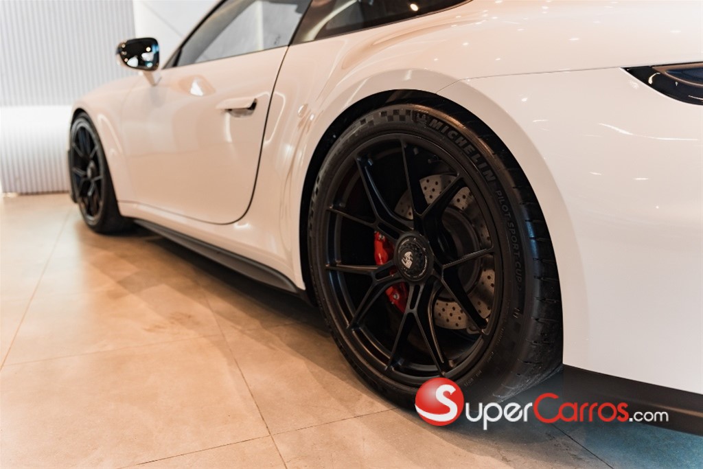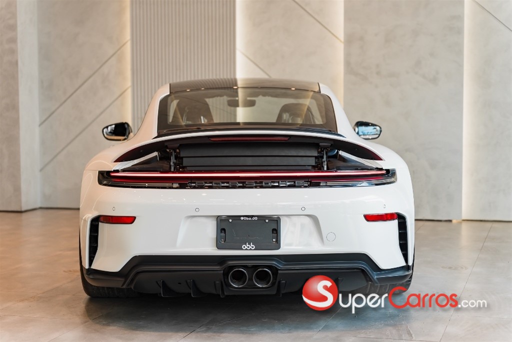 Porsche 911 GT3 Touring 2026 *Motor y transmisión -Tipo de motor: bóxer atmosférico de 6 cilindros en línea (flat-6) de aluminio. -Cilindrada: 3.996 cm³ (4.0 L). -Potencia máxima: 510 CV (375 kW) al rededor de 8.400 rpm. -Par motor máximo: 470 Nm aproximadamente a 6.100 rpm. -Régimen máximo: hasta 9.000 rpm. -Transmisión: Disponible caja manual GT de 6 marchas o caja de doble embrague PDK de 7 marchas. -Tracción: Trasera (RWD) *Aceleración 0 a 100 km/h: -Con PDK: 3,4 s ([files.porsche.com][1]) -Velocidad máxima: 311-313 km/h dependiendo de transmisión. *Características destacadas Variante “Touring”: se identifica por el paquete Touring que prescinde del alerón fijo típico de la versión GT3, y en su lugar usa un alerón retráctil más discreto, manteniendo el espíritu de deportividad purista. Motor derivado de la experiencia de competición y altas revoluciones, con tecnología avanzada de cilindros, admisión, etc. Chasis/suspensión deportiva: por ejemplo, suspensión delantera de doble horquilla, elementos derivados de competición.