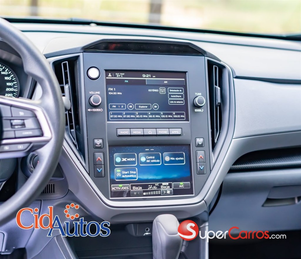 Observaciones: • Financiamiento hasta 7 años para pagar. • Aprobación y entrega inmediata. • Recibimos tu vehículo como parte del pago. • Garantía 3 años o 100,000 KMS. • Seguro FULL hasta 12 meses para pagar. • Asesoría durante todo el proceso. Tecnología: • Guía Multifunciones con diseño de 3 puntas forrado en piel. • Controles de Radio y computadora de abordo en el Guía. • Luces y limpiavidrios automáticos. • Radio con doble pantalla de 7” pulgadas c/u, táctil a color. • (MP3 Player), bluetooth, entradas USB. • Sistema de sonido con 4 altavoces. • Sistema X-mode para condiciones todo terreno. • Subaru SI-DRIVE (modo de manejo inteligente y sport). • Sistema de reconocimiento de voz. • Android Auto y Apple Carplay. • Conexión de Teléfono por Bluetooth. • Keyless entry & keyless start (acceso y encendido sin llave). Seguridad: • 8 Airbags (frontales, laterales, cortina, rodilla y cojín). • Sistema de inmovilización. • Programa electrónico de estabilidad (ESP). • Sistema de control de tracción (TCS). • Sistema de control de descenso. • Barras protectoras en las 4 puertas. • Sistema de detección de fatiga del conductor. • Ganchos ISOFIX para asientos de infantes. • Sistema de frenos de discos delanteros y traseros ventilados. • Sistema antibloqueo de regulación electrónica (ABS). • Retención automática del vehículo.