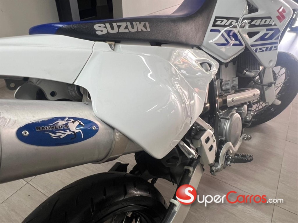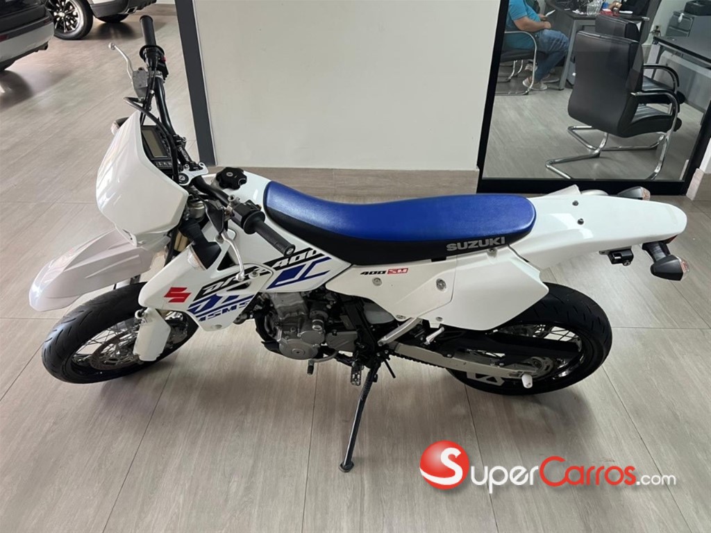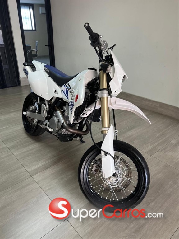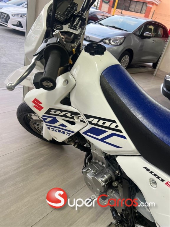 Suzuki DR-Z400SM La versión SM es la variante supermotard (Aros 17” para asfalto) de la DR-Z400. ?? Especificaciones principales Motor: Monocilíndrico, 4 tiempos, DOHC Cilindrada: 398 cc Refrigeración: Líquida Carburación: Mikuni BSR36 (carburada) Transmisión: 5 velocidades Potencia: 39 hp Peso en orden de marcha: aprox. 146 kg ?? Características destacadas Aros 17” con neumáticos deportivos (supermotard) Suspensión invertida totalmente ajustable Chasis ligero y muy maniobrable Excelente para ciudad y manejo agresivo en curvas Mecánica muy confiable y fácil de mantener ?? Ventajas ? Muy divertida ? Bajo costo de mantenimiento ? Motor resistente ? Ideal para uso urbano