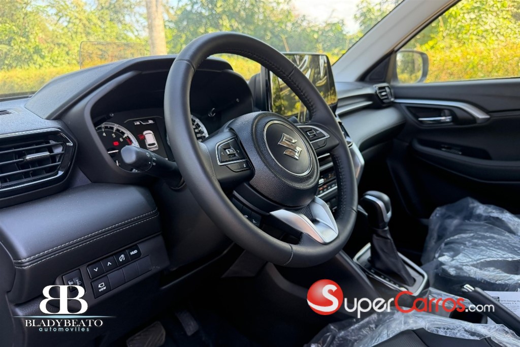 *UNIDAD 0KM* CASHBACK DE 2000.00 USD APLICADO •Motor gasolina 1.5L, 4 cilindros, 16 válvulas, 103 HP, 137 NM •Sistema hibrido ligero: Smart Hybrid Vehicle by Suzuki (SHVS) de 12V •Generador de arranque integrado (ISG) •Batería de iones de litio auto recargable •Transmisión Automática de 6 velocidades con modo manual (Paddle shift) •Frenos de disco en las 4 ruedas con sistema ABS, EBD & ESP •Bolsas de aire frontales, laterales y de cortina (6 bolsas de aire) •Cristales, seguros y retrovisores acción eléctrica•Aire acondicionado Automático•Salida de aire en la parte trasera •Asientos tapizados en piel sintética•Radio Touch de 9” Bluetooth con Apple car Play & Android Auto•Cámara de vista panorámica 360 grados.•Sensores de parqueo traseros•Keyless entry & Push Start system.•Control de radio en el volante•Volante con ajuste vertical y telescópico•Barras laterales contra impacto•Aros de aleación de 17""•Luces LED frontales & traseras •Sistema Follow me home•Dirección electrónica•Cruise control•Apoya brazos delantero y trasero•Alarma integrada•Sistema ISOFIX•Rack de techo•Volante forrado en piel•Control de agarre en pendientes•retrovisores con acción eléctrica, retráctil y luz direccional•Head-up Display•Cargador inalámbrico•Dos cargadores USB traseros•Luz en el maletero