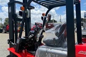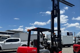 Montacargas de 3.5 toneladas con una altura máxima del bun (chanclas) de 15 pies, recién importado y cuenta con su mantenimiento al día. Financiamiento disponible