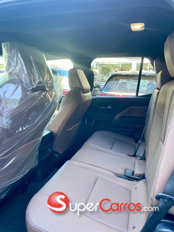 Tecnología: • Cruise Control Adaptativo de alto rango. • Sistema Smart Entry (Llave inteligente). • Cargador inalámbrico. • Radio (AM/FM/BLUETOOTH/CAR PLAY/ANDROID AUTO). • Espejo retrovisor eléctrico. • Luces en LED (DRL) con sistema control lavador. • Compuerta trasera automática. • 4 conectores tipo USB. • AC inversor salidas 120V/100W. • BSM rango alto cámaras panorámicas. • Sistema de conducción 5 modos. • Pantalla informativa con tablero de 12.3? Multifuncional. • Sistema automático de luces. Seguridad: • Frenos de 17? ventilados (VSC, ABS, EBD, BA, EPB). • Sistema de estabilidad (VSC/MTS/DAC/CRAWL). • Sistema Toyota Safety Sense (TSS3). • Sistema de prevención de choque (PCS). • Airbags (Frontales, Laterales, Cortinas). • Inmovilizador/Alarma/Sirena/Luces intermitente. • Cinturones de seguridad para los 7 pasajeros. • Alerta de frenada de emergencia. • Alerta de salida de carril (ARL). • Parqueo PKSB, sensores delanteros y traseros. • Estabilizador delantero OFF/ON mode.
