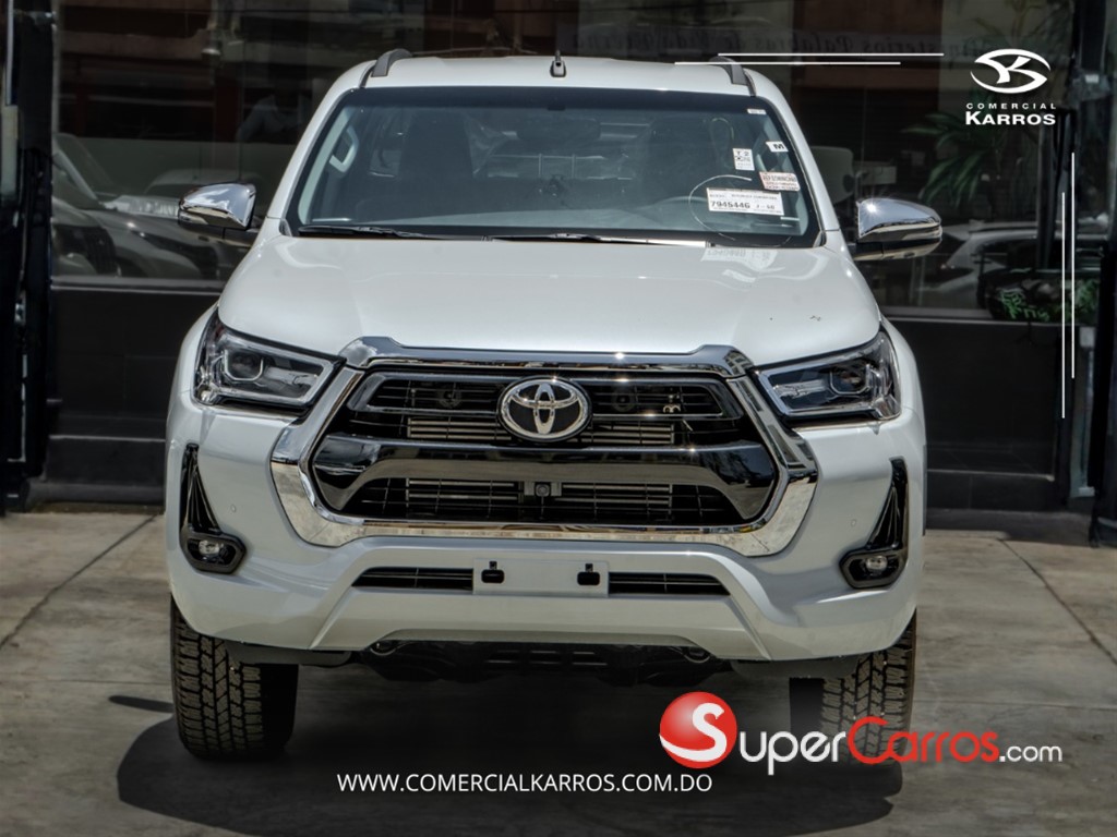 TOYOTA HILUX SRV (LIMITED) / 2025 BLANCA 4X4 * LA MEJOR CAMIONETA DEL MERCADO, LA INDESTRUCTIBLE, VEN POR TU TOYOTA HILUX. RECUERDA QUE SOMOS COMERCIAL KARROS TU MEJOR OPCION, NO DUDES EN CONTACTARNOS, TENEMOS MUCHAS UNIDADES DISPONIBLES PARA ENTREGA INMEDIATA!!! PROPULSION Y TREN MOTRIZ: -Motor 2,800cc, 4 cilindros, Turbo Diesel -Consumo promedio de 45km por galon de Gasoil -Automatica 6 velocidades -Frenos de discos con ABS, EBD Y BA delanteros, traseros de tambor -Suspension delantera independiente doble brazo, resortes helicoidales, amortiguadores telescopicos y barra estabilizadora -Suspension trasera hojas de ballesta y amortiguadores telescopicos -Neumaticos 265/65 R17 -Traccion 4x4 con selector multiterreno EQUIPAMIENTO: -Llave intenligente con encedido por boton -Radio AM/FM/CD/MP3/Bluetooth/ Android Auto + Apple Car Play -Guia multifuncion con ajuste telescopico -Camara de reversa -Sensor de parqueo trasero -Aire Acondicionado digital -Espejos con direccionales electronicos -Luces delanteras LED -Luces traseras LED -Luz de halogenos delanteros -7 Airbags -Sistema de inmovilizador -Cinturones de seguridad multipuntos -Vidrios y seguros electricos -Tablero multifuncion -Guantera con llave de seguridad -Estribos laterales de fabrica -Parrilla de techo -Compartimiento central con cool box -Control descenso -Selector de manejo (Power, Normal y Eco) -Asientos en leatherette -Limpia vidrios traseros -Freno emergencia -Barras laterales contra impacto -Kit de herramientas Auxiliares -Goma de repuesto * Financiamiento disponible con aprobación inmediata y las mejores tasas del mercado. * Recibimos tus vehículos como parte del pago por la compra al mejor precio del mercado. * Gestionamos tu seguro full o de ley segun requieras. * Factura con valor fiscal disponible CONTACTO: 829-798-2898 Carlos Payano 809-913-7701 Gregory Rodriguez 849-850-3114 Federico Lopez 829-871-5997 Josue Martinez