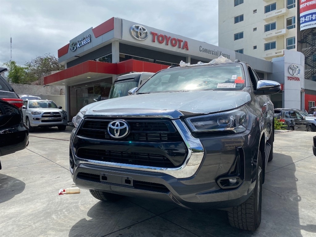 TOYOTA HILUX SRV (LIMITED) / 2023 GRIS OSCURO 4X4 * LA MEJOR CAMIONETA DEL MERCADO, LA INDESTRUCTIBLE, VEN POR TU TOYOTA HILUX. RECUERDA QUE SOMOS COMERCIAL KARROS TU MEJOR OPCION, NO DUDES EN CONTACTARNOS, TENEMOS MUCHAS UNIDADES DISPONIBLES PARA ENTREGA INMEDIATA!!! PROPULSION Y TREN MOTRIZ: -Motor 2,800cc, 4 cilindros, Turbo Diesel -Consumo promedio de 45km por galon de Gasoil -Automatica 6 velocidades -Frenos de discos con ABS, EBD Y BA delanteros, traseros de tambor -Suspension delantera independiente doble brazo, resortes helicoidales, amortiguadores telescopicos y barra estabilizadora -Suspension trasera hojas de ballesta y amortiguadores telescopicos -Neumaticos 265/65 R17 -Traccion 4x4 con selector multiterreno EQUIPAMIENTO: -Llave intenligente con encedido por boton -Radio AM/FM/CD/MP3/Bluetooth/ Android Auto + Apple Car Play -Guia multifuncion con ajuste telescopico -Camara de reversa -Sensor de parqueo trasero -Aire Acondicionado digital -Espejos con direccionales electronicos -Luces delanteras LED -Luces traseras LED -Luz de halogenos delanteros -7 Airbags -Sistema de inmovilizador -Cinturones de seguridad multipuntos -Vidrios y seguros electricos -Tablero multifuncion -Guantera con llave de seguridad -Estribos laterales de fabrica -Parrilla de techo -Compartimiento central con cool box -Control descenso -Selector de manejo (Power, Normal y Eco) -Asientos en leatherette -Limpia vidrios traseros -Freno emergencia -Barras laterales contra impacto -Kit de herramientas Auxiliares -Goma de repuesto * Financiamiento disponible con aprobación inmediata y las mejores tasas del mercado. * Recibimos tus vehículos como parte del pago por la compra al mejor precio del mercado. * Gestionamos tu seguro full o de ley segun requieras. * Factura con valor fiscal disponible CONTACTO: 829-798-2898 Carlos Payano 809-913-7701 Gregory Rodriguez 849-850-3114 Federico Lopez 829-871-5997 Josue Martinez
