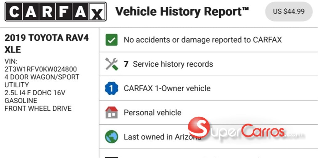 Toyota rav4 xle. clean carfax. año 2019. versión americana. cámara de reversa. llave inteligente. sonrun. radal anti accidente. accesorios. modo de manejo, eco,sport, y normal. cristales y retrovisores eléctricos. faro halógeno. excelente condiciones precio 29,400. financiamiento disponible.. un año de garantía en motor y transmisión certificado. recibo tu vehiculo de menor valor financiamiento disponible..